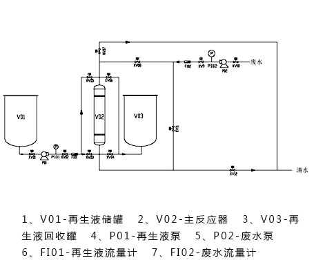再生液儲罐、主反應器、再生液回收罐、再生液泵、廢水泵、再生液流量計、廢水流量計、壓力表、智能儀表、空氣開(kāi)關(guān)等電氣、嵌入式一體化彩色觸控顯示屏。