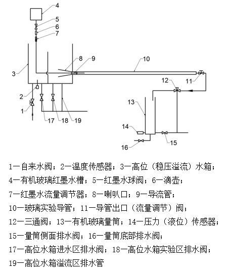 本裝置主要由高位穩壓溢流水箱、不銹鋼框架、玻璃實(shí)驗導管、控制柜、有機玻璃量筒、壓力傳感器、三通閥、智能儀表、閥門(mén)管路等組成。可配嵌入式一體化彩色觸控顯示屏