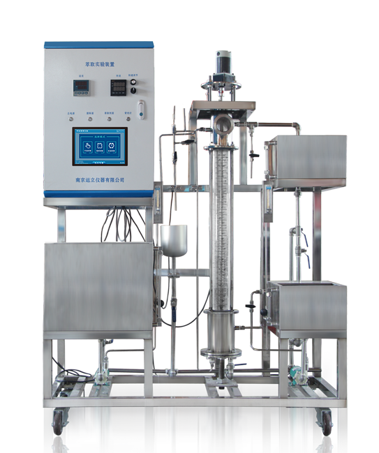 轉盤(pán)萃取塔、調速電機、萃取劑槽、原料槽、萃余相槽、原料泵、萃取劑泵、轉子流量計、溫度傳感器、不銹鋼閥門(mén)若干、智能儀表、嵌入式一體化彩色觸控顯示屏。